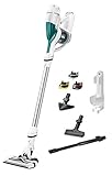 Sa capacité à se transformer en aspirateur balai grâce à sa perche télescopique (incluse) le positionne à mi-chemin entre les deux catégories. Le bac à poussière est relativement petit — comptez deux vidages pour un nettoyage complet.